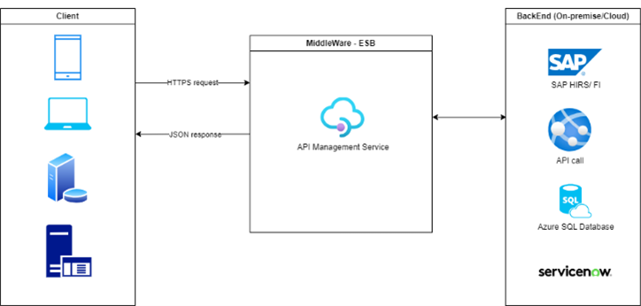 ESB offers a range of solutions and integration patterns, such as REST APIs, integrations based on PUBLISH-SUBSCRIBE model, or data transfer and transformation (ETL) through Azure Data Factory.
